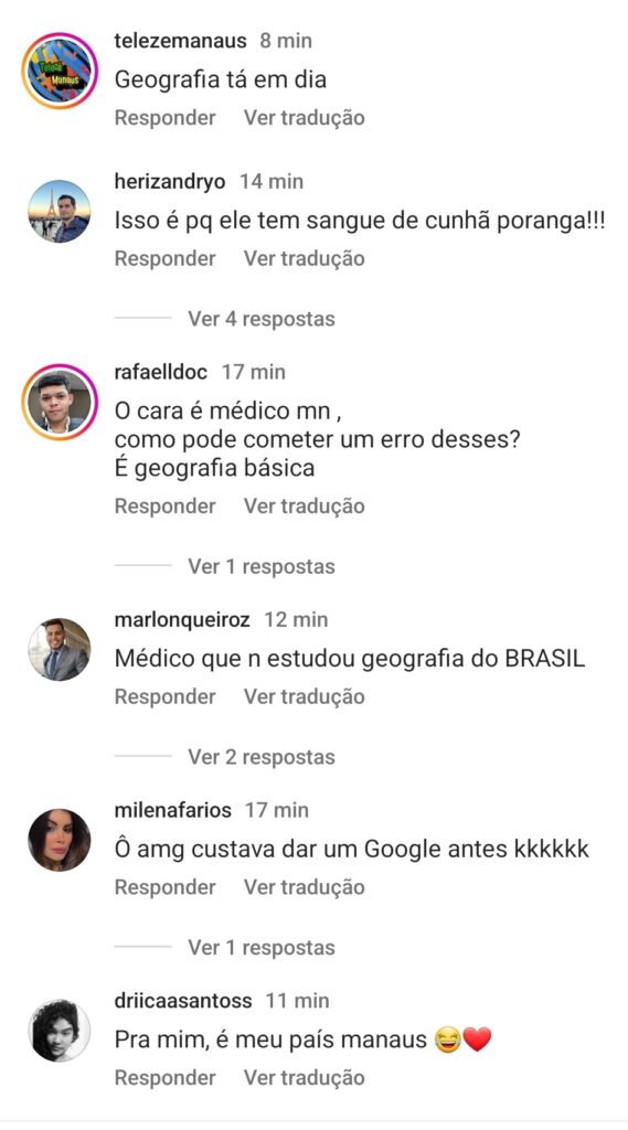 O médico e ex-BBB, Fred Nicácio conhecido por ser debochado no reality, acabou sendo alvo de críticas após confundir a capital Manaus como estado de Parintins.