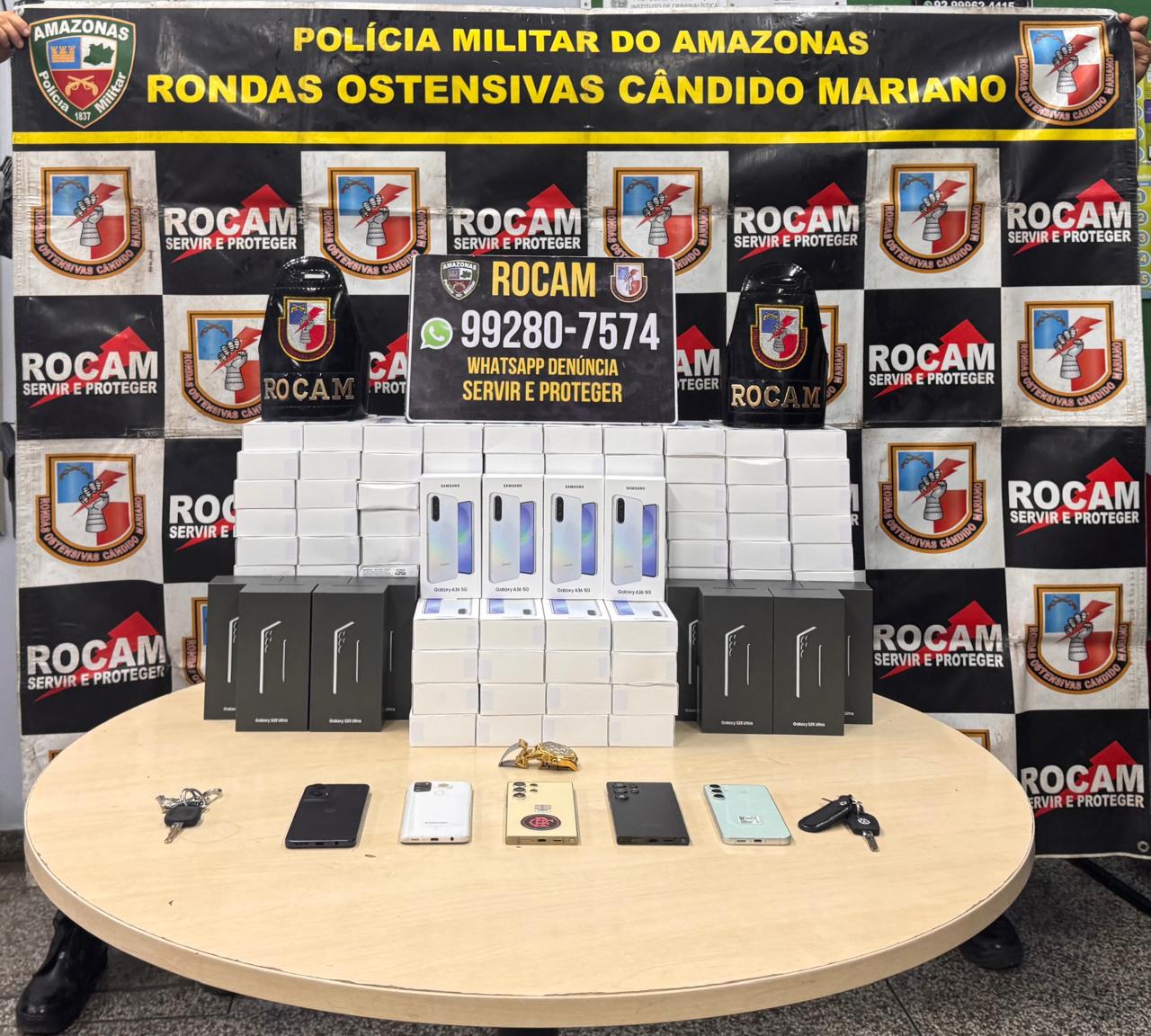 Polícia Militar do Amazonas prende trio e recupera 135 celulares furtados de empresa